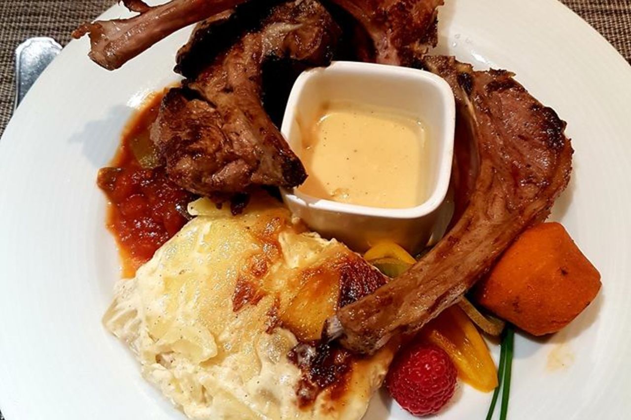 Côte d'agneau a la crème d'ail et gratin dauphinois.